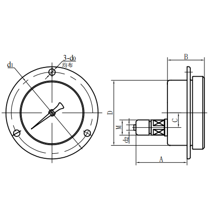 | YJY100 -Ⅳ | 68 | 44 | 34 | Φ 100 | Φ 6 | Φ 118 | Φ 6 | M20 × 1.5 |
