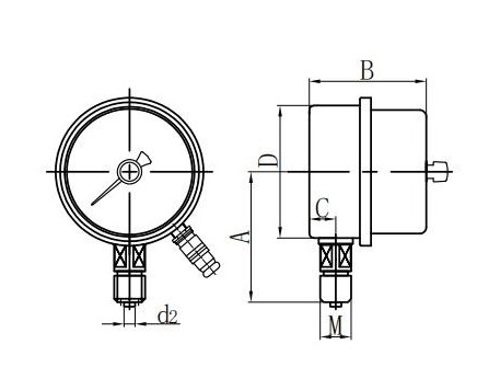 ◆ Toepassing: dit type instrument is geschikt voor het meten van de druk van vloeistoffen, gassen of dampen zonder explosie, geen kristallisatie, geen stolling en geen corrosief effect op koper- en koperen legeringen. Wanneer het is uitgerust met een geschikt circuitsysteem, kan het een alarm of automatische regeling sturen naar het te gemeten en gereguleerde druksysteem.